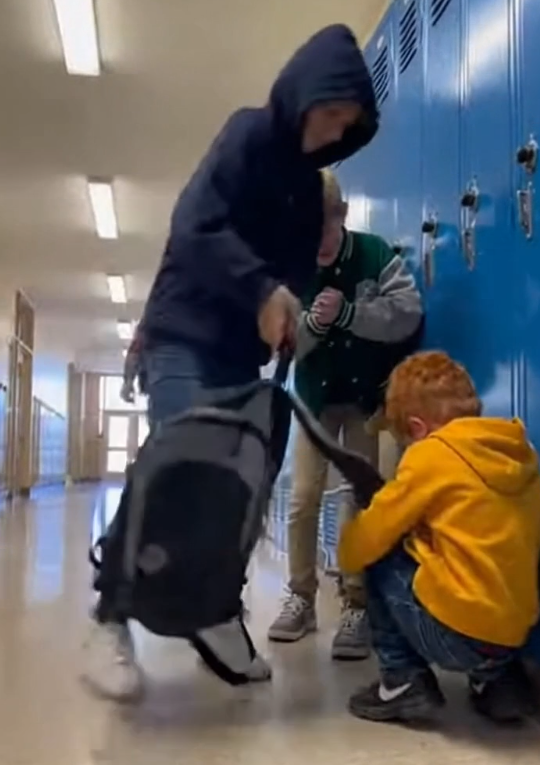 The hallway was loud until it wasn’t. Lockers slammed like drums. Shoes squeaked against polished floors. Voices echoed and overlapped, the everyday soundtrack of a school between classes. Then a sharp crack sliced through it all. A backpack swung hard and struck a boy on the shoulder, then again across the side of his head. Books exploded onto the floor, pages skidding like they’d been kicked loose on purpose. In a space meant for learning, fear took center stage.