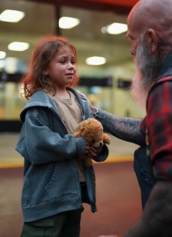 The girl winced when the blood pressure cuff tightened around her arm. The biker noticed. He didn’t interfere or panic. He simply placed his hand on the edge of the exam table—not touching her, just close enough to feel steady.