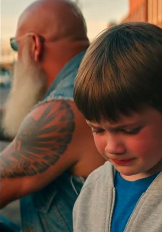 Among the group was one biker who moved a little slower than the rest. His beard carried gray along the edges, and his eyes had the calm of someone who had lived long enough to understand silence. He noticed the boy immediately—not because the kid was loud, but because he wasn’t.