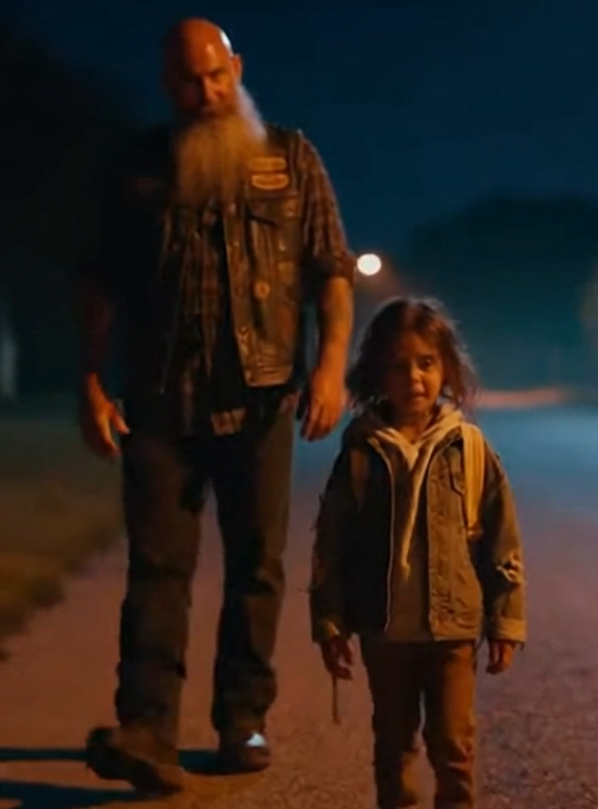 The biker stood and offered his hand—not to drag her home, not to force a solution, but to walk her to the diner on the corner. Bright lights spilled onto the sidewalk.