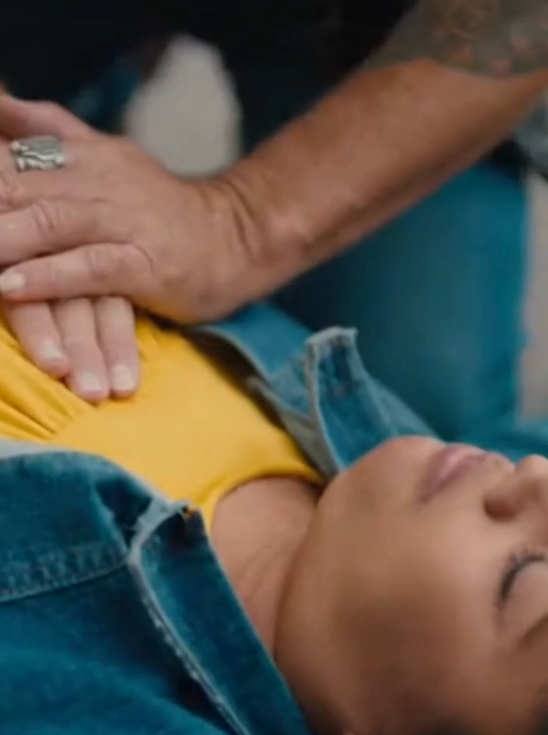 Her chest rose sharply as she pulled in air, coughing weakly. The biker stopped compressions instantly and rolled her gently onto her side, keeping her airway clear.