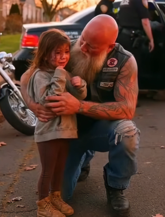 The biker didn’t flinch. His leather vest was worn thin from years on the road, boots planted firm on the pavement. “When a kid looks scared,” he said, “it becomes everyone’s business.”