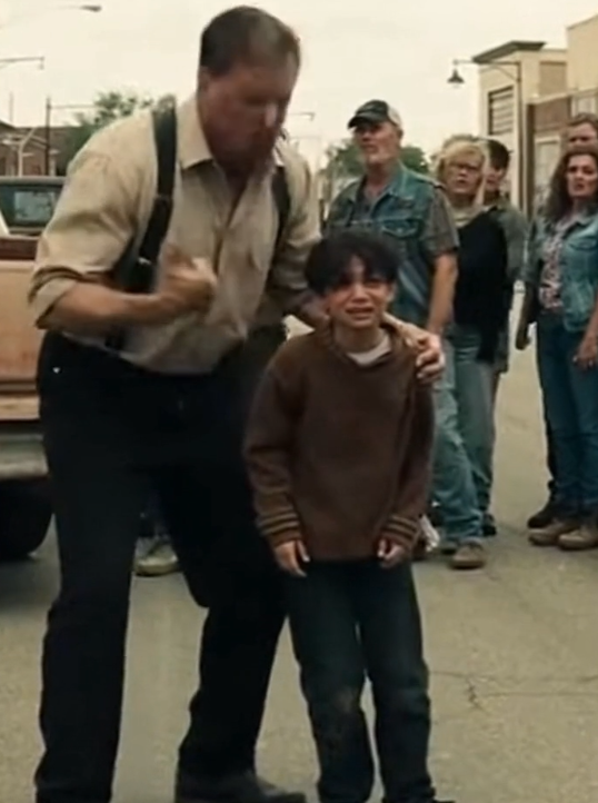 He was maybe eight or nine years old. Too young to fully understand why moments like this happen, but old enough to feel the weight of them. His hands were clenched at his sides, knuckles pale. His eyes stayed fixed on the ground, as if staring hard enough might make him disappear.