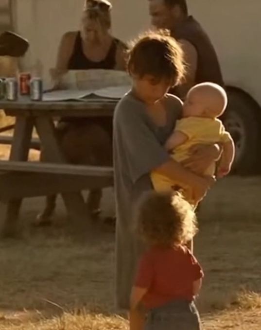 Eventually, the toddler’s mother appears—flustered, apologetic. She takes the younger child into her arms.