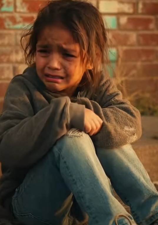 Near a wooden bench sat a little girl—maybe seven years old. Her small legs swung slightly, barely touching the ground. Her hands were folded tightly in her lap, fingers pressed together like she was holding something in.