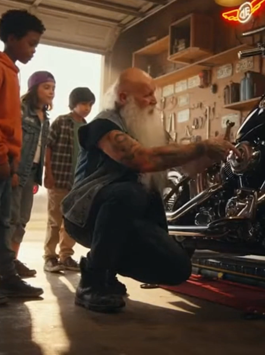 Just oil-stained jeans. Smiles that couldn’t be hidden. Each kid rebuilt a part of a bike that day. When the engine finally roared to life, the sound echoed through the garage like a victory chant.